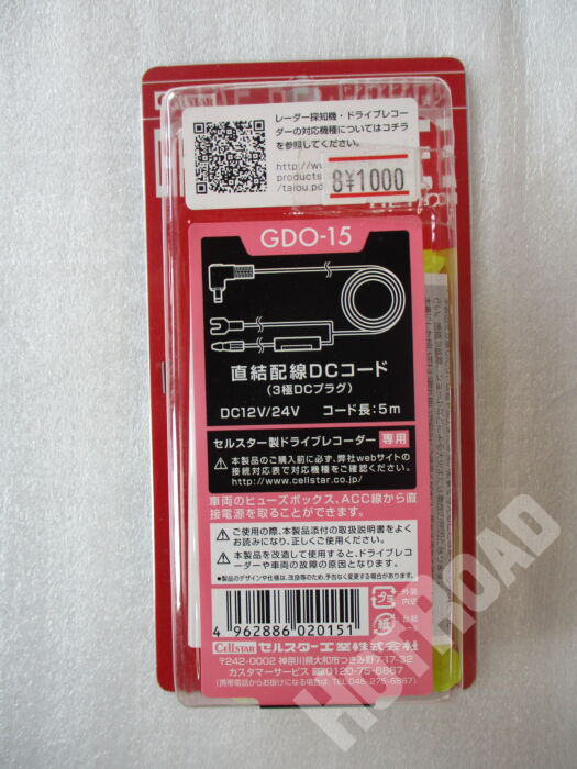 CELLSTAR セルスター GDO-15 ドライブレコーダー 直結配線DCコード