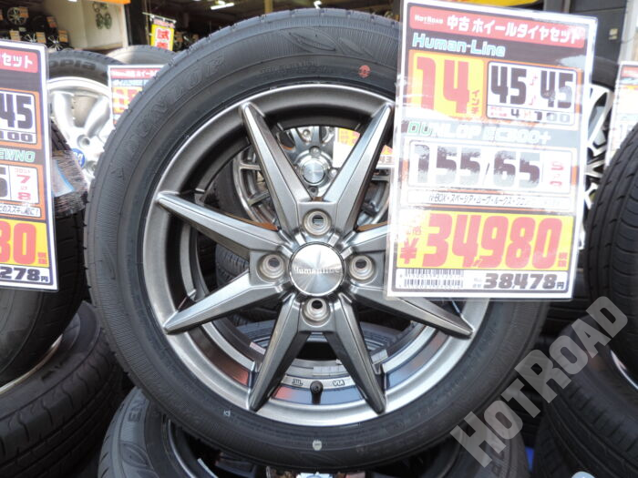 【中古ホイールタイヤセット】Human-Line 14インチ DUNLOP EC300+ 155/65R14