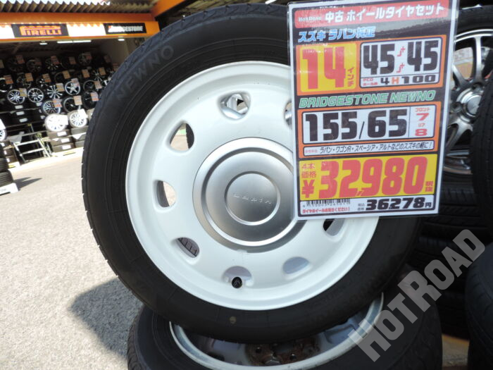 【中古ホイールタイヤセット】スズキ ラパン純正 14インチ BRIDGESTONE NEWNO 155/65R14