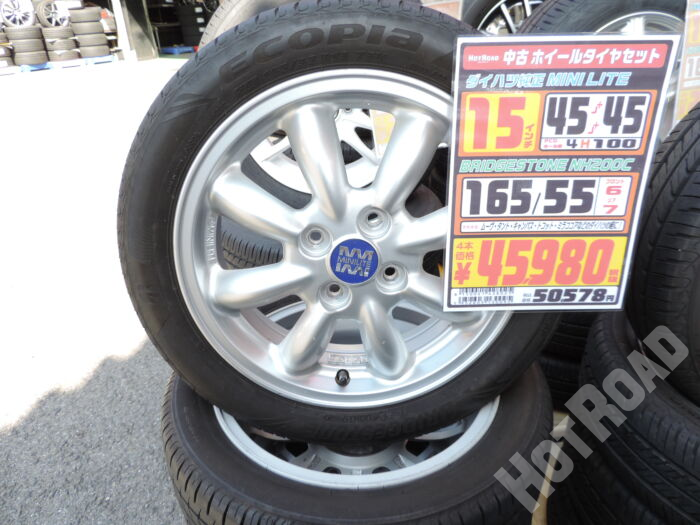 【中古ホイールタイヤセット】ダイハツ純正 MINI LITE 15インチ BRIDGESTONE NH200C 165/55R15