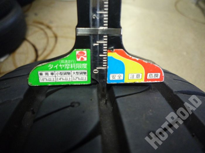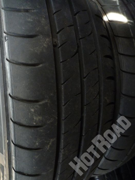 タイヤ2本のみ外側の溝が減っています。