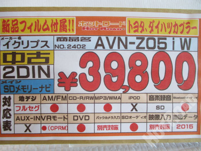 HOME > カー用品 > イクリプス AVN-Z05iW 中古