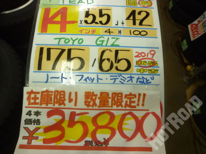HOME > カー用品 > 東郷店 > トーヨー GIZ 175/65r14 2019年製 AWセット