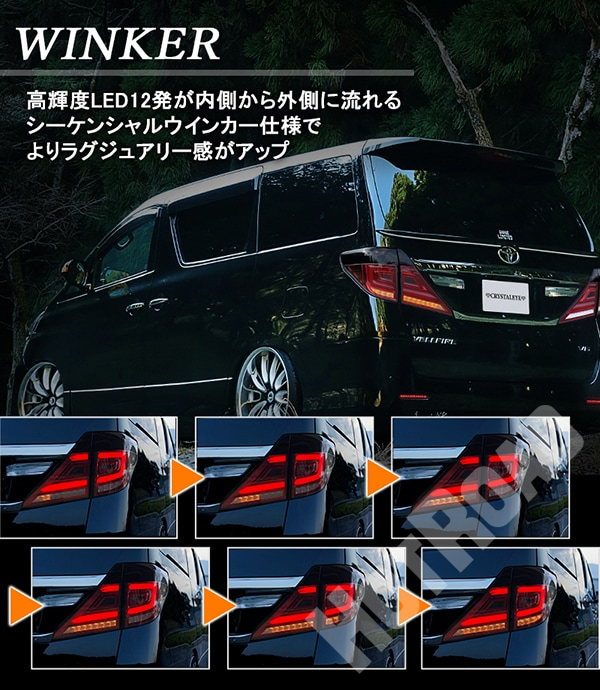 クリスタルアイ ファイバーフルLEDテールV3流れるシーケンシャルウィンカー 20系アルファード/ヴェルファイア