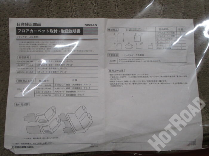 HOME > カー用品 > 長久手店 > NISSAN L33 ティアナ 純正 フロアマット 美品