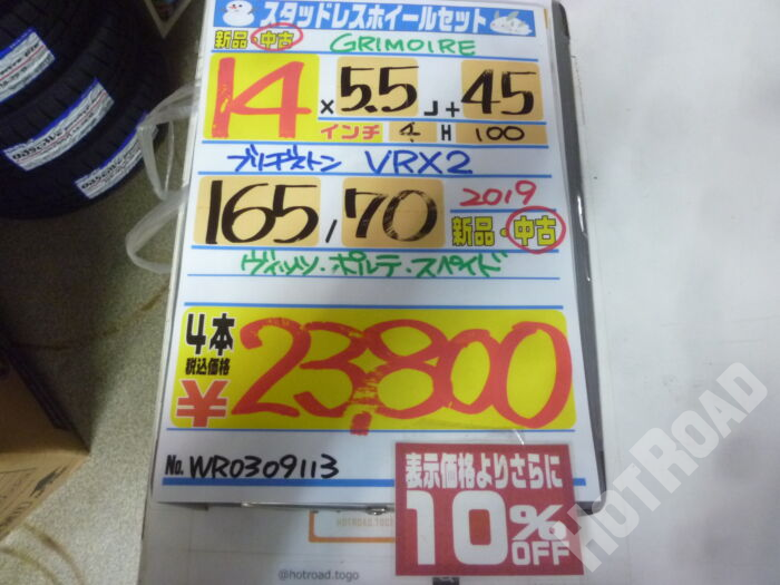 ブリジストン VRX2 165/70r14 2019年 AWセット