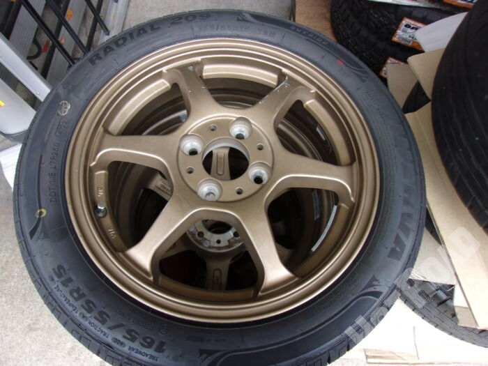 HOME > カー用品 > 各務原店 > 【中古ホイール + 新品タイヤセット】ブロンズ 15インチ 4H100 ミネルバ 165/55R15 アルミセット4本