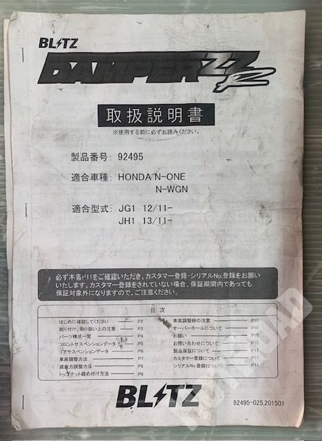 HOME > カー用品 > 豊橋店 > BLITZ ブリッツ 車高調 ダンパー ZZ-R N-ONE N-WGN JG1 JH1 92495