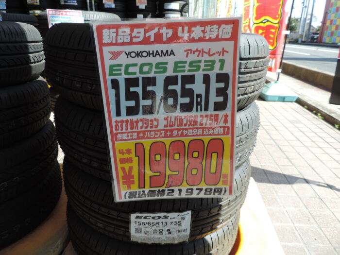HOME > カー用品 > 各務原店 > 【新品タイヤ】4本特価 155/65R13 YOKOHAMA ECOS ES31 アウトレット価格