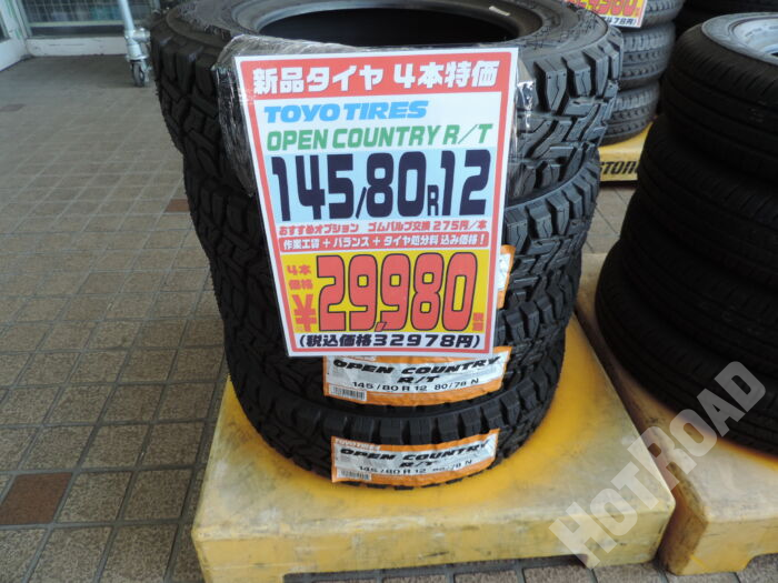 HOME > カー用品 > 各務原店 > 【新品タイヤ】4本特価 145/80R12 TOYO OPEN COUNTRY R/T