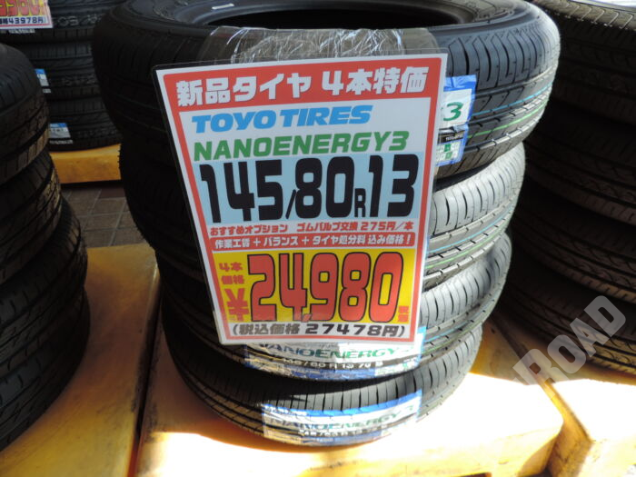 HOME > カー用品 > 各務原店 > 【新品タイヤ】4本特価 145/80R13 TOYO NANOENRGY3