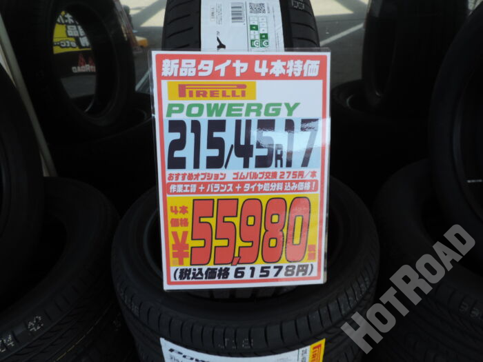 HOME > カー用品 > 各務原店 > 【新品タイヤ】4本特価 215/45R17 ピレリ POWERGY