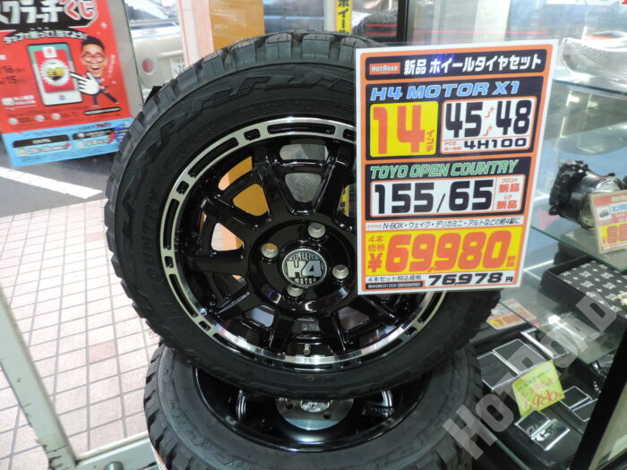 HOME > カー用品 > 各務原店 > 【新品】ホイールタイヤセット 155/65R14 H4 MOTOR X1 TOYO OPEN COUNTRY