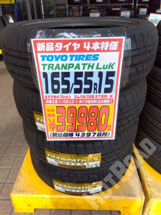 HOME > カー用品 > 各務原店 > 【新品タイヤ】4本特価 165/55R15 TOYO TRANPATH Luk