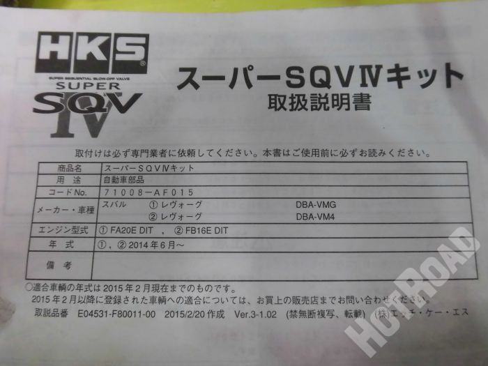 HOME > カー用品 > 春日井西店 > HKS SQV ブローオフバルブ レヴォーグ